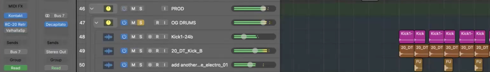 Nothing too crazy on the drums. We’re just in sample land here, with some Splice stuff, but I layered the sample with the snare I had in the session.